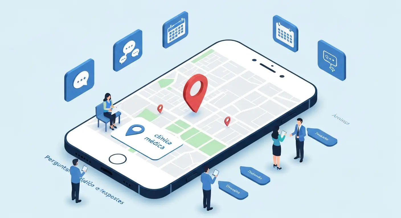 Eu vejo o perfil da clínica no Google Maps como uma recepção que nunca dorme. Muita gente ignora a seção de “Perguntas e Respostas”, mas é ali que você quebra as primeiras barreiras de um paciente inseguro. Responder se o local aceita determinado convênio ou se há estacionamento mostra que existe alguém atento do outro lado da tela.